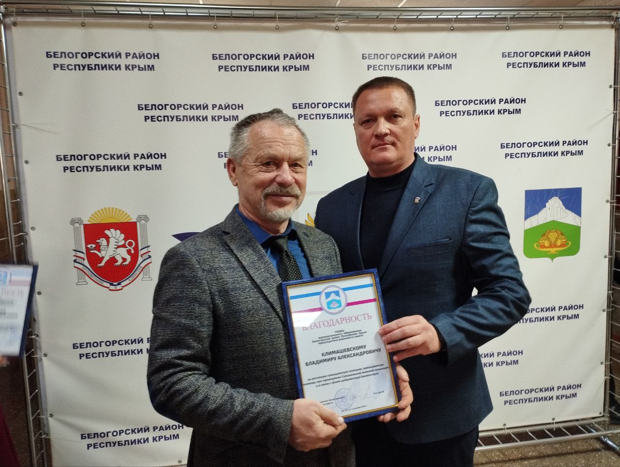 16 декабря 2025 года председатель Белогорского районного совета Анатолий Бугай вместе с депутатом Государственного Совета Республики Крым Анной Рубель и главой администрации Белогорского района Дмитрием Чумаковым встретился с волонтерами - жителями района, которые ежедневно неустанно трудятся, обеспечивая надежный тыл нашим бойцам – участникам специальной военной операции.