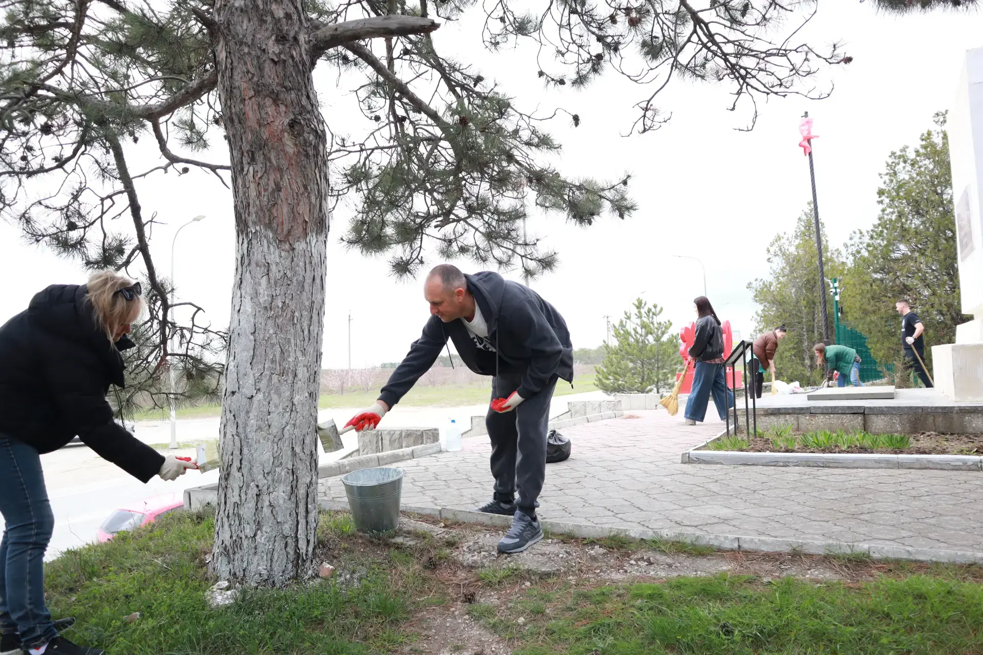 На субботнике занимались уборкой мусора и побелкой деревьев, наведением порядка во дворах и на общественных территориях.